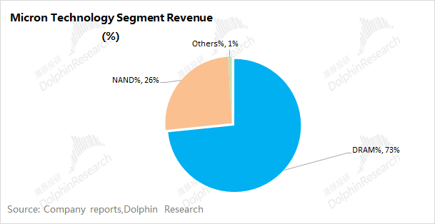 从此前海豚君的不雅点看,公司最大的收入开始即是存储芯片。从最新的财报看, DRAM和NAND仍然是公司最伏击的收入开始,两者诡计占比达到99%。因此对好意思光业务的变化,主要看DRAM和NAND业务的情况。