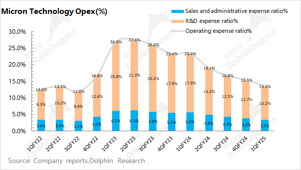 好意思光公司2025财年第一季度概念用度11.76亿好意思元,同比增长6.1%。跟着收入增长,公司本季度概念用度率着落至13.5%。