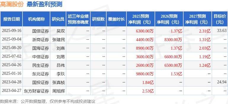 以下是详备的盈利预测信息: