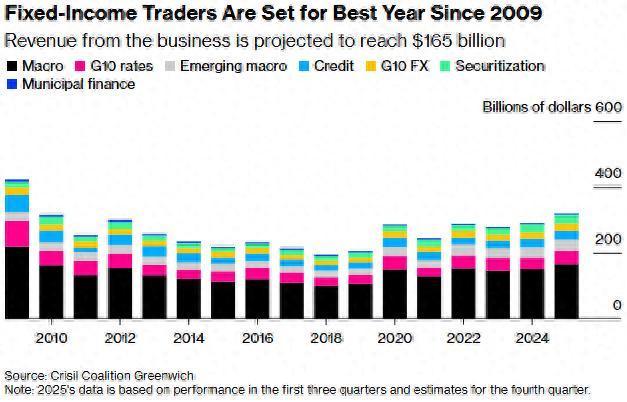 凭据Crisil Coalition Greenwich的数据,高盛集团、摩根大通和花旗集团等公司本年瞻望将从固定收益、信贷和巨额商品往返中产生1650亿好意思元的收入,较2024年增长10%。